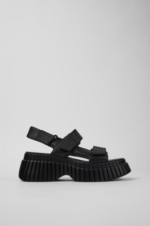 Camper Platforms | WOMEN Black Leather Sandals for Women.