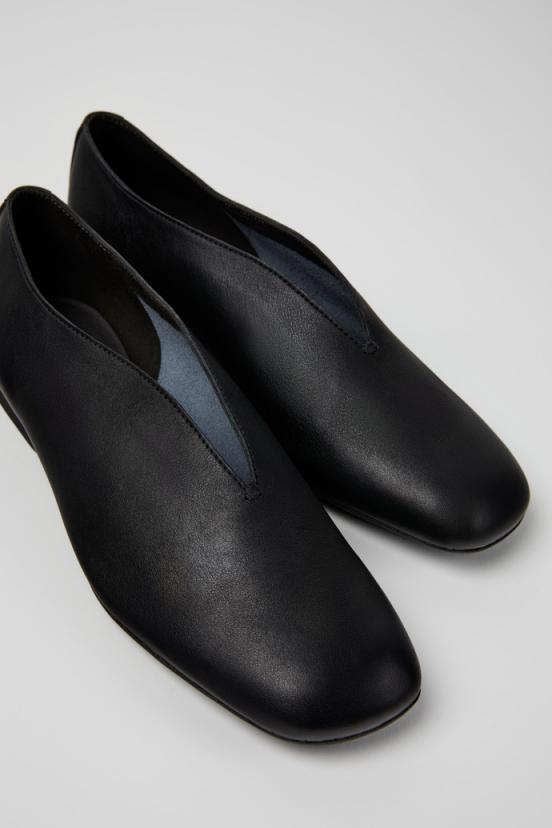Black leather women’s shoes with OrthoLite Recycled footbeds and TPU outsoles (20% recycled). Our feminine Casi Myra line boasts a timeless design with a slightly squared shape.