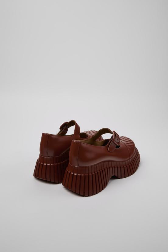 Red leather women’s shoe with OrthoLite Recycled footbeds. A bold platform with a chunky outsole, Pix BCN redefines volume and comfort.