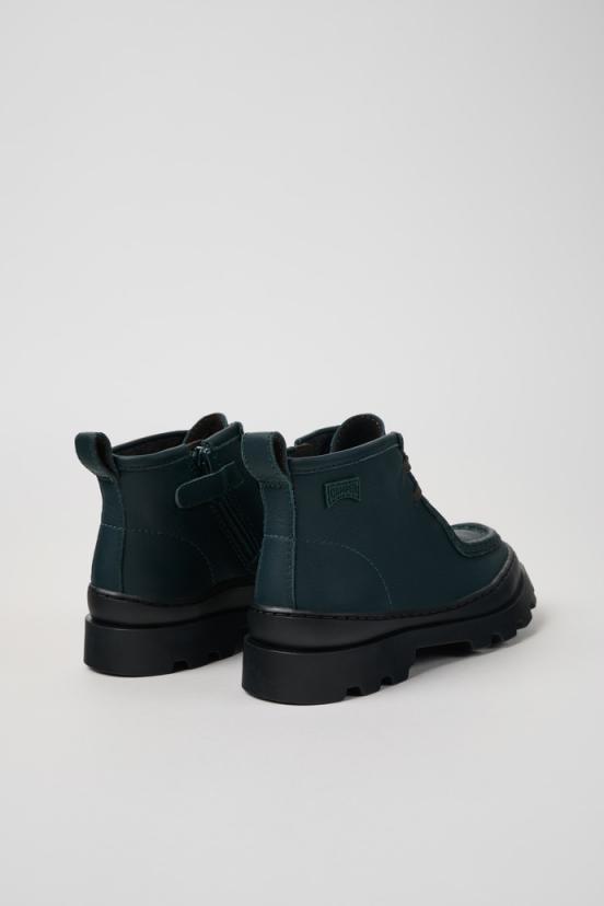Green leather kids’ ankle boots with OrthoLite Recycled removable footbeds and rubber outsoles. Brutus for kids with its robust urban design and exceptional grip is durable thanks to its 360 stitching.