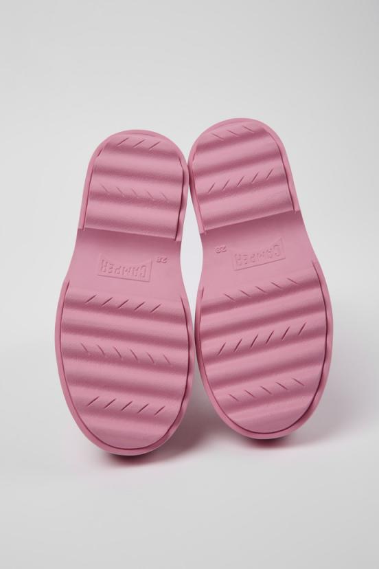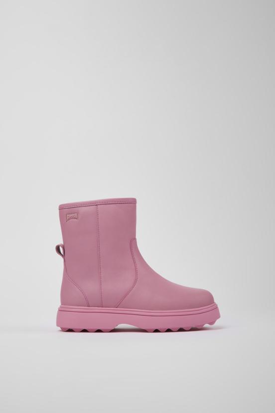 Pink leather kids’ ankle boots with rubber outsoles. Norte is characterized by a classic, chunky and robust profile with a rubber outsole for a good grip.