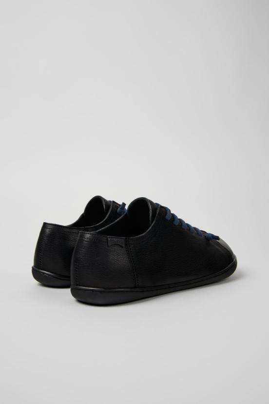 Black vegetable tanned leather men’s shoe with PU footbed, elastic laces and TPU outsoles (20% recycled). Made in Europe We are dedicated to creating durable, long-lasting products with the lowest possible environmental impact. Developed and crafted in Europe, each pair combines the highest quality materials with generations of shoemaking heritage. A Camper Icon that evolves with every season, Peu offers functional simplicity inspired by walking barefoot. It is 360-degree stitched and built with a Strobel construction technique, guaranteeing unmatched flex and durability under any conditions.