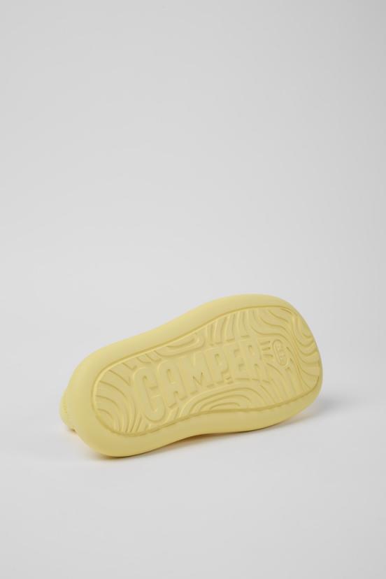 Yellow recycled neoprene women’s sandals by Camper x Ottolinger with XL EXTRALIGHT Organix 3.0 outsoles (with 30% bio-circular compounds). Berlin-based womenswear label Ottolinger is a collaboration between Swiss-born designers Christa Bösch and Cosima Gadient. Their avant-garde designs showcase the duo’s fearlessly destructive approach to luxury fashion’s status quo. Established in 2016, Ottolinger’s creations subvert traditional notions of textural and deconstructive applications, characterized by carefully considered detailing and labor- intensive hand work like burning, lacerating, dipping, dying, and ripping
