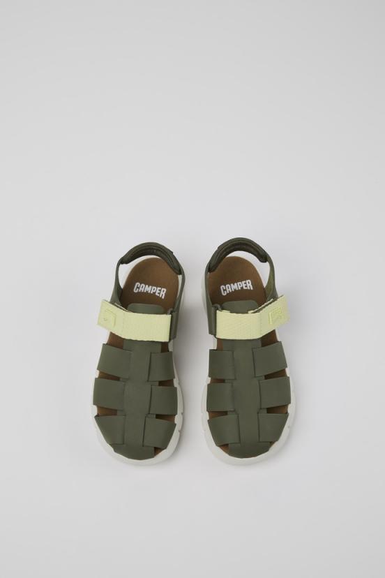 Multicolor leather and textile kids’ closed sandals with hook & loop system and EVA outsoles. The light and bendable Oruga combines Camper’s distinctive urban style with soft leathers and textiles.
