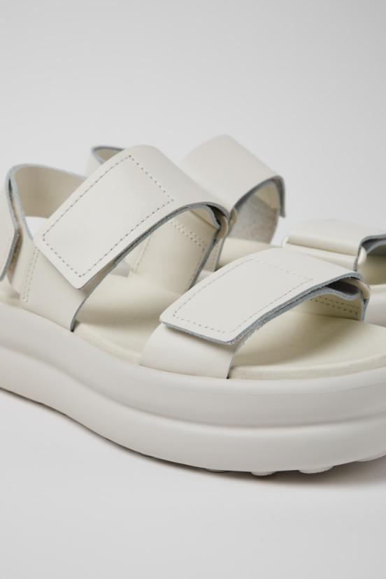 White leather women’s sandals with an EVA footbed, hook & loop system, and XL EXTRALIGHT EVA outsoles. This new version of Pelotas Flota, still inspired by inflatable objects, offers extra height with a unique, easy-fit design and a fresh, summery look.