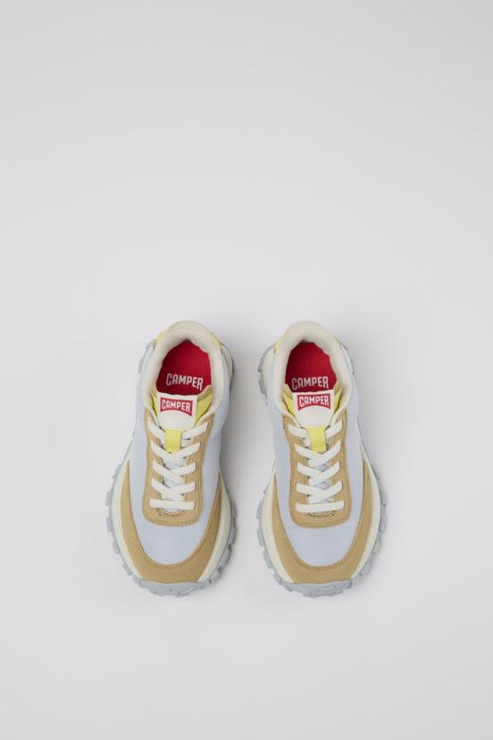 Gray textile/nubuck kids’ sneakers with elastic laces, removable PU footbeds and rubber/EVA outsoles. Say hello to Drift Trail, the ’70s-inspired sneaker from the Adult collection adapted for little feet.