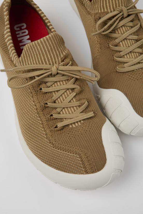 Brown men’s sneakers with recycled polyester & elastane one-piece knit, lace closures, recycled OrthoLite footbeds, and rubber outsoles. An ergonomic sneaker designed with a barefoot approach, Peu Path is crafted from recycled and natural materials with one of the lowest carbon footprints in the collection.