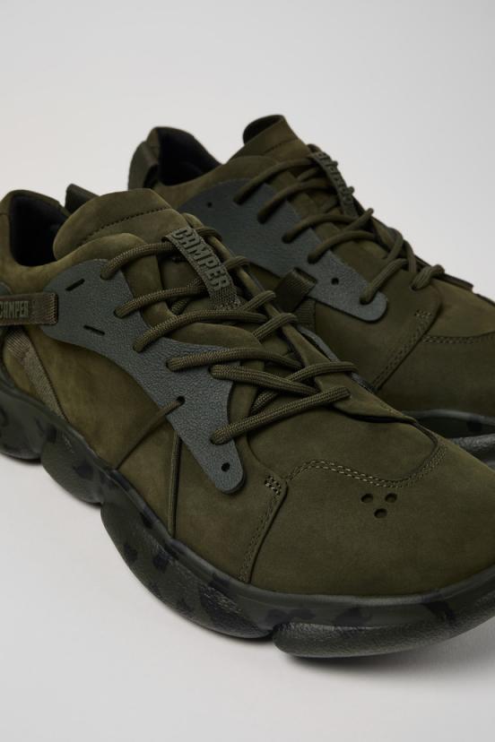 Green nubuck and textile men’s sneakers with OrthoLite Recycled removable footbeds and XL EXTRALIGHT Organix 3.0 outsoles (30% bio-circular compounds). A unisex ergonomic design inspired by the rocky landscape of the Tramuntana mountains. That’s Karst.